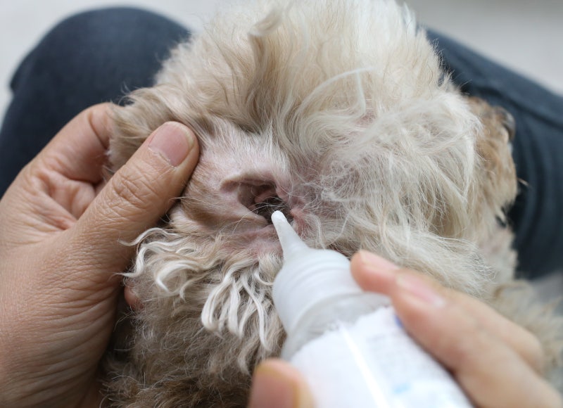 강아지 귀세정제 퍼즈야드로 귀 청소를 한 후 귀지이병 외이염을 예방합니다.