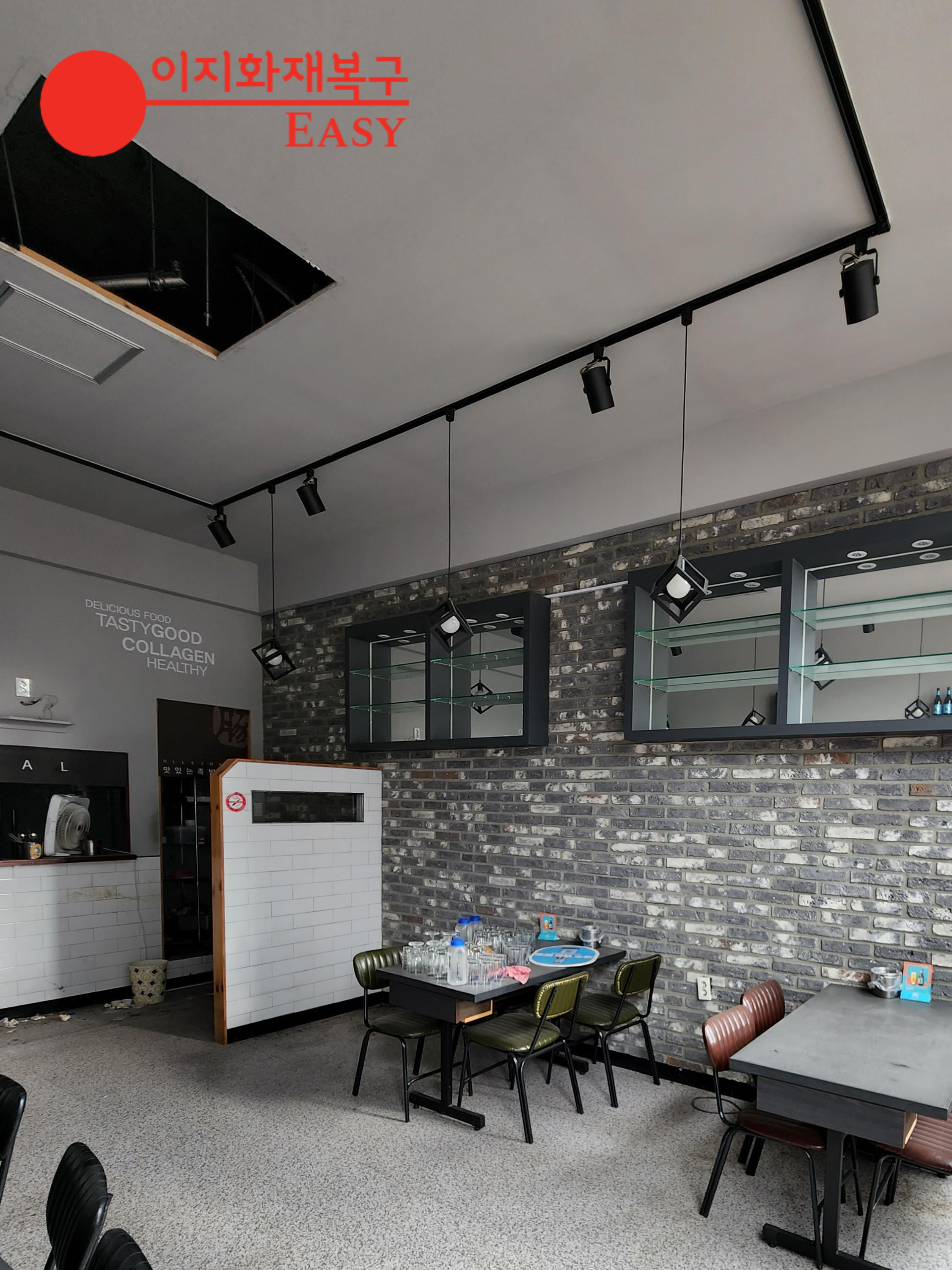 특히 지금 보고 있는 곳은 간접화재로 인해 흰 벽이 회색빛으로 변한 것을 짐작할 수 있다. 작업이 어렵고 고려해야 할 사항이 많기 때문에 보는 것만으로도 문제가되지 않습니다.