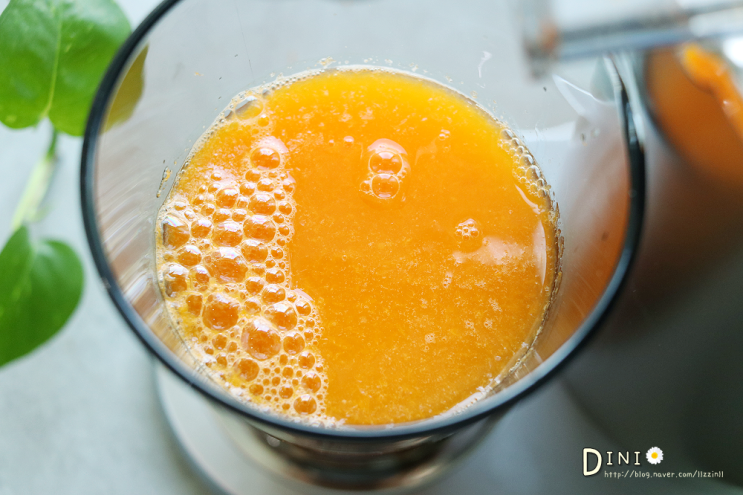 귤 먹을 때 껍질에 붙어 있는 하얀 부분을 아주 잘게 뜯어 드시는 분들이 많죠?착즙주스로 귤주스를 만들어 드시면 전부~ 마실 수 있어요.(웃음)
