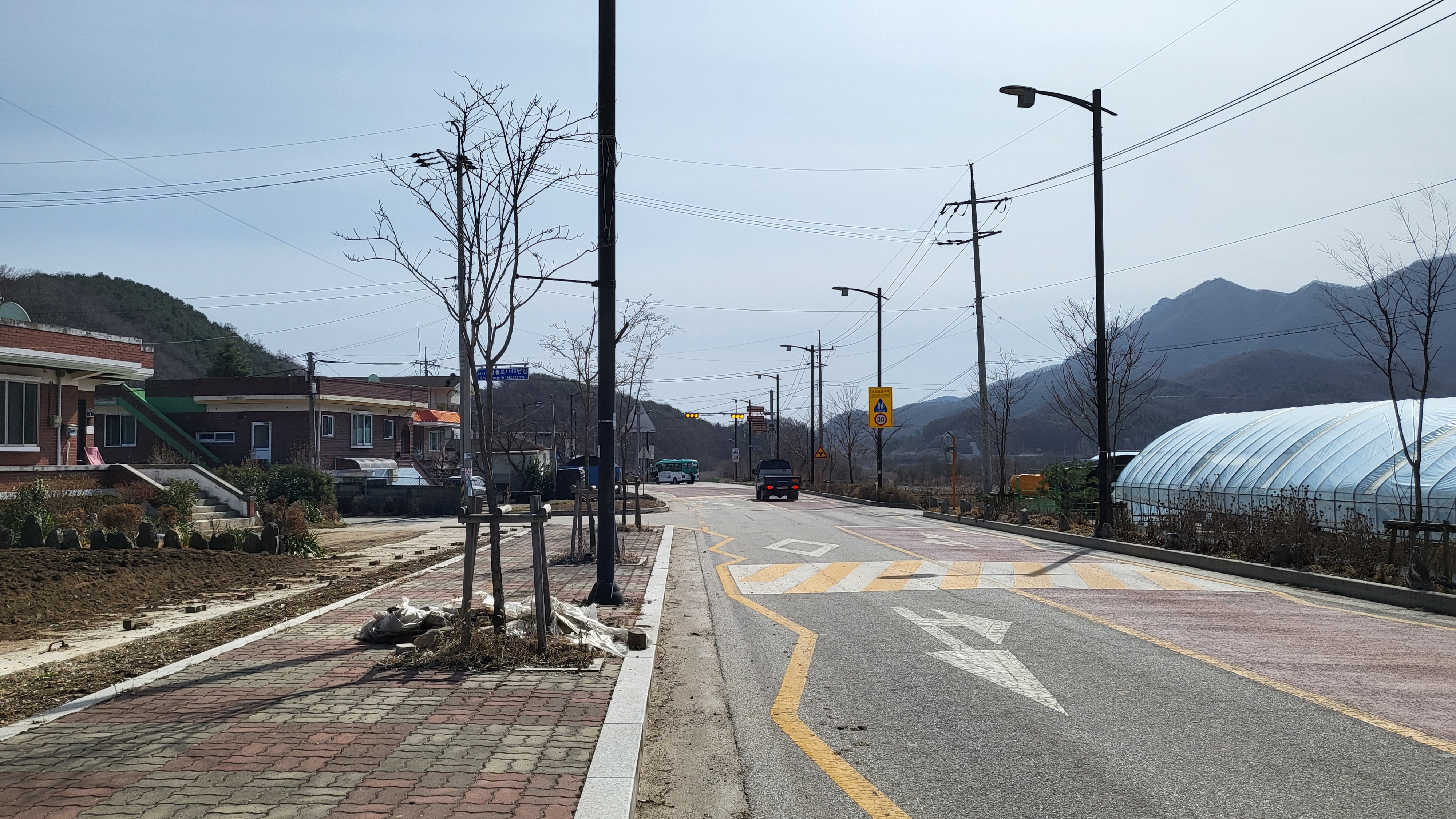 마을(10가구 정도 – 근처에 등산로 있음)이 있지만 버스 정류장은 없습니다.