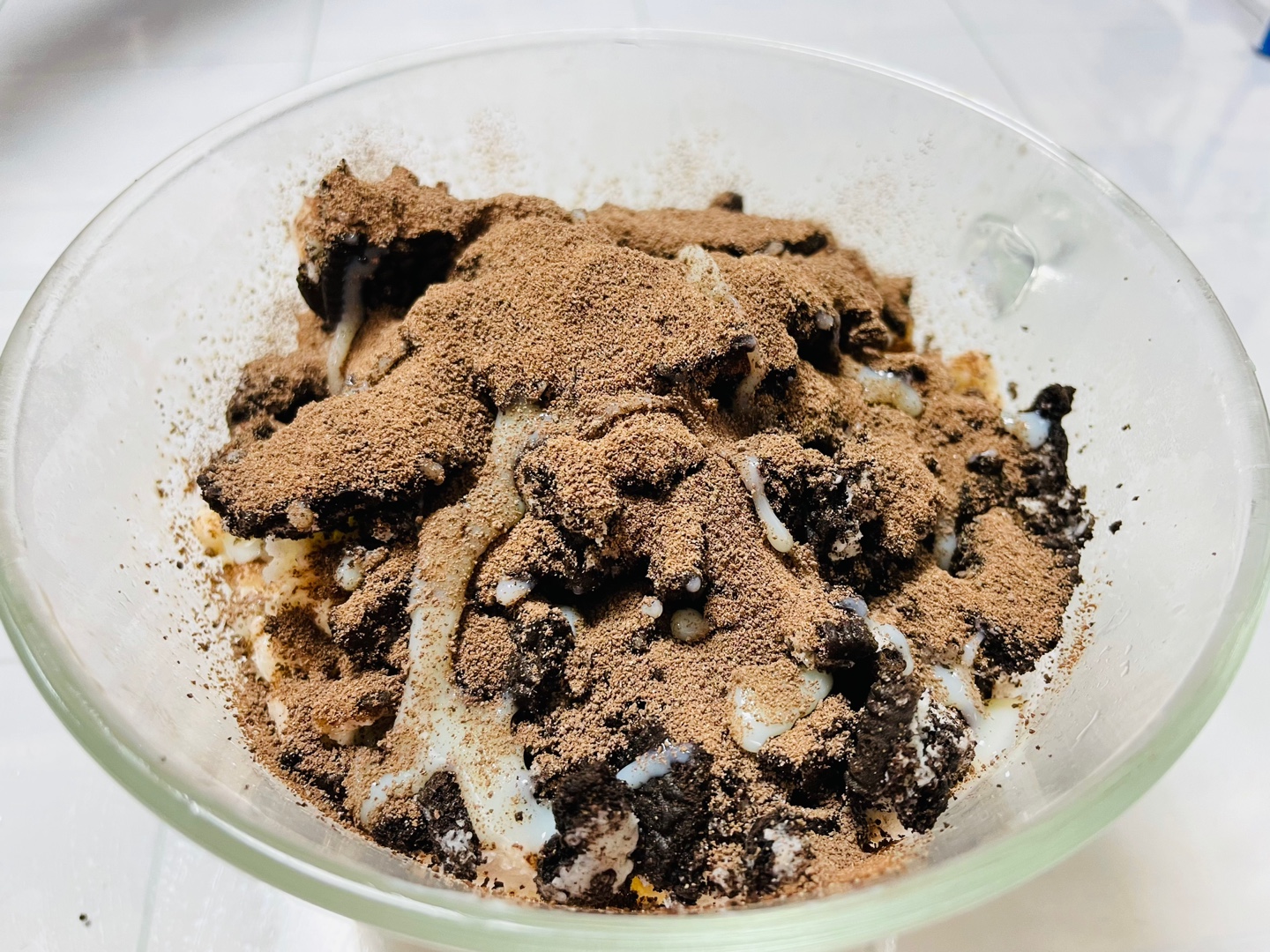 으깬 냉동 우유와 오레오.