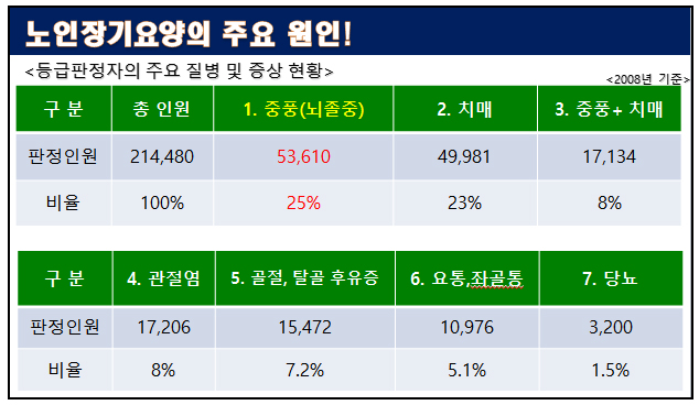 장기 요양 계층은 이제 보편적이므로 치료를 받지 않는 노인을 찾기가 더 어렵습니다. 1-2단계는 일상 생활에 완전하거나 실질적인 도움이 필요한 사람들입니다. 3단계는 노인의 도움이 필요한 일부 사람들을 위한 것입니다. 일상생활의 타인 4급은 일상생활에서 타인의 도움이 필요한 사람 5급은 치매환자 노인요양보험법 제2조에 따르면 노인성질환에 한정된 수준이다. 노인요양보험법 시행령 제2조에 따르면 치매환자는 노인병에 한한다. 등급을 받을 수 있습니다. 최근에는 많은 노인들이 치매에 걸렸다고 느끼며, 치매 치료를 받고 있는 노인들이 많다. 치매는 원인에 따라 감염성 치매, 독성대사성 치매, 저산소성 치매 등 약 70여 가지가 있다. 알츠하이머 혈관성 치매는 가장 흔하고 많이 진행되며 빠르게 요양원에 입원할 수 있습니다. 또는 점점 더 많은 뇌 혈관 질환. 사실 치매보험에 가입하고 싶은데 사실 치매보험이 너무 비싸요. 곧 치매 진단을 받지 않는 한 그 정도의 할부금을 저축해야겠다는 생각이 스쳐지나갔다.