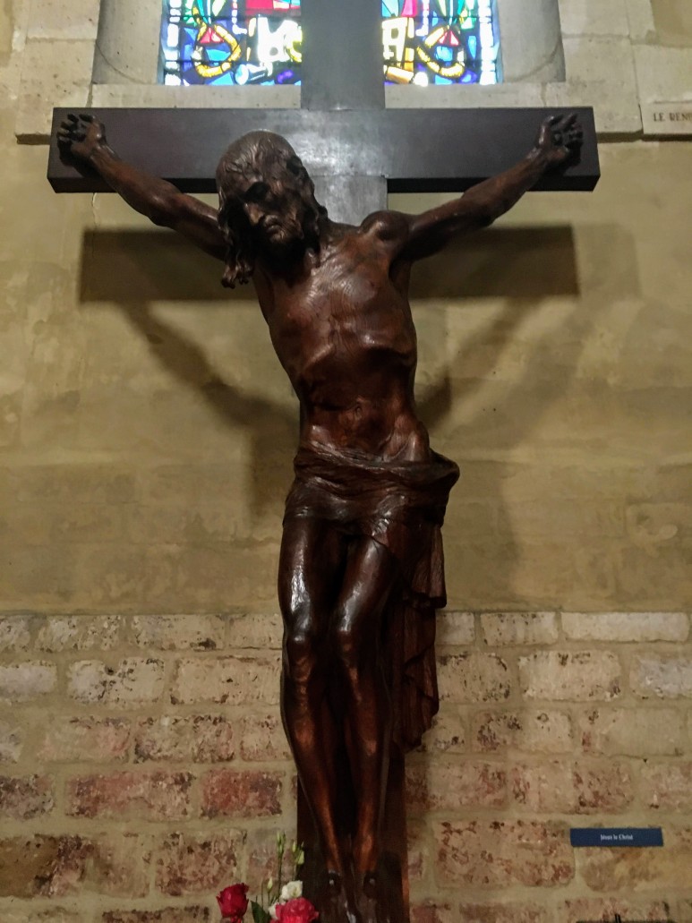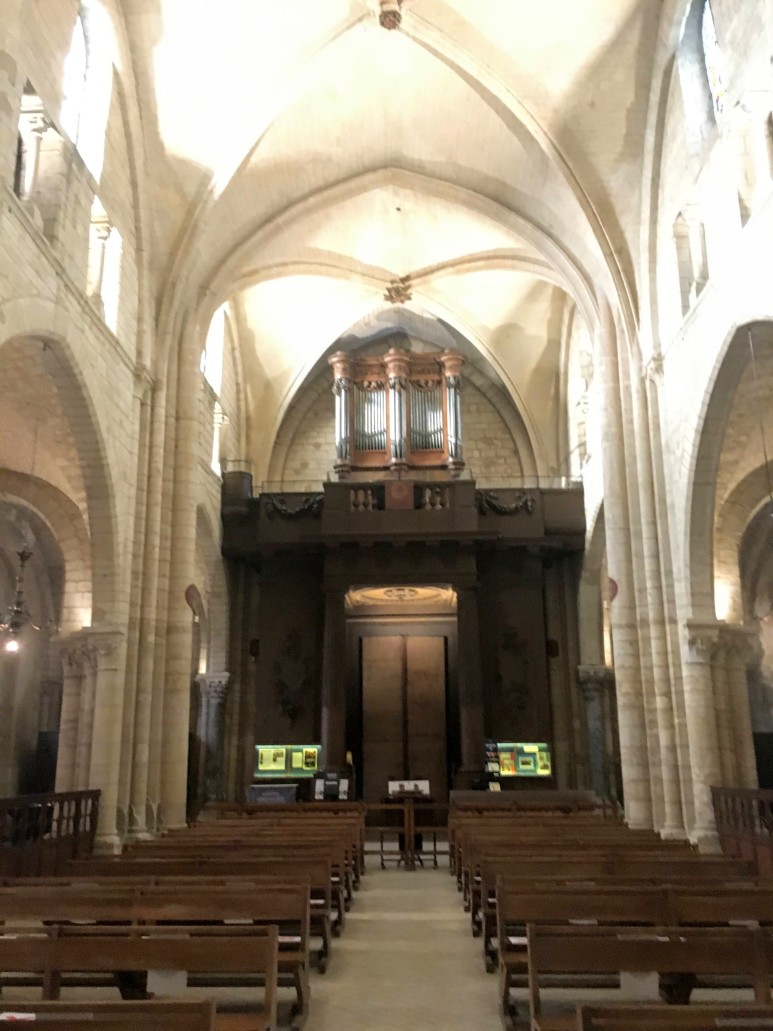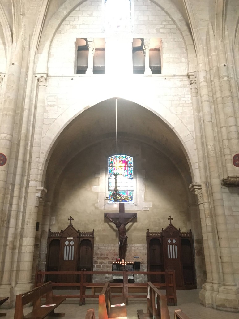 신도석의 건설은 12세기 중반까지 완료되지 않았으며 후진은 같은 세기 말에 원시 고딕 양식으로 재건되었습니다. 그러나 오늘날의 본당 금고와 수랑의 교차점은 매우 화려하게 장식되어 있으며 백년 전쟁이 끝날 무렵 교회를 대대적으로 수리하는 동안 1470년경에 만들어졌습니다. 교회 입구에 있는 거대한 청동 문은 1980년에 지어졌습니다.