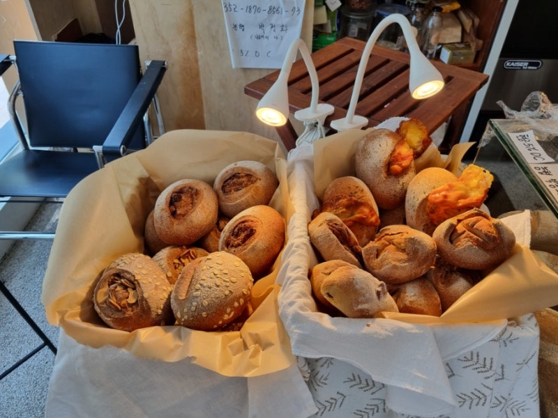 통밀가루로 만들어 건강하게 즐길 수 있는 나로서의 나 100% 유기농 통밀을 이용해 만드는 빵은 이미 동네에서 꽤 유명해서 포장하러 오시는 분들도 많았고, 이날 카페 앞에 있는데도 여러 사람이 물어봤다.여기는 빵이 유명하냐고?맛있냐고