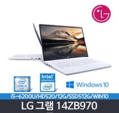 LG 그램 14ZB970 I5-6200/12G/SSD512G/UHD520/14인치/WIN10, LG 14ZB970, WIN10 Pro, 12GB, 512GB, Core i5, White