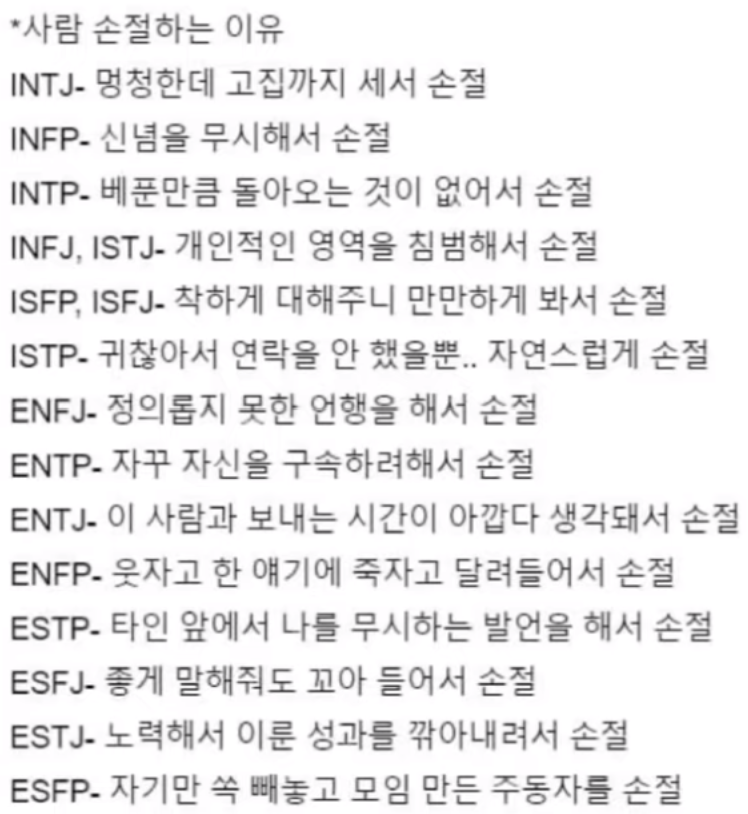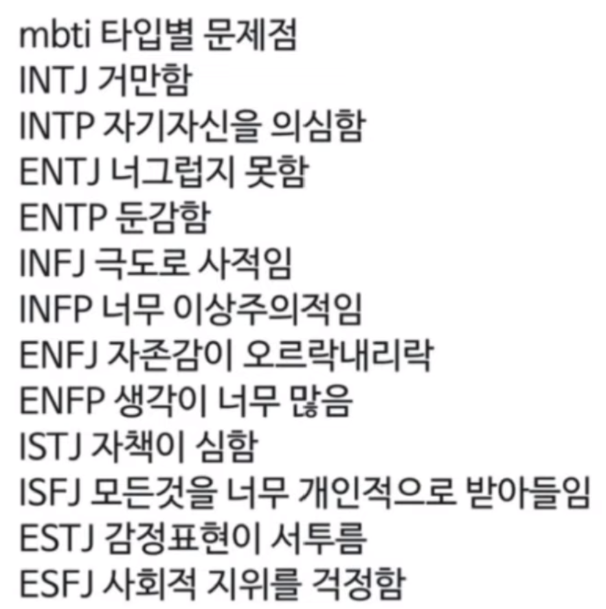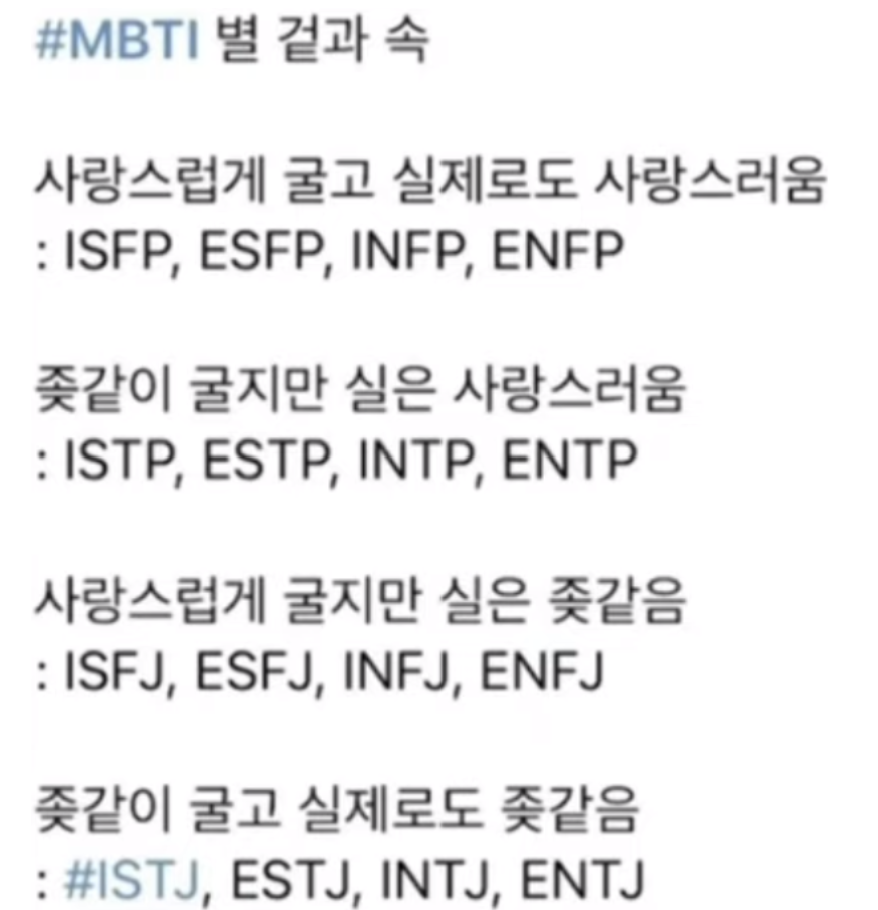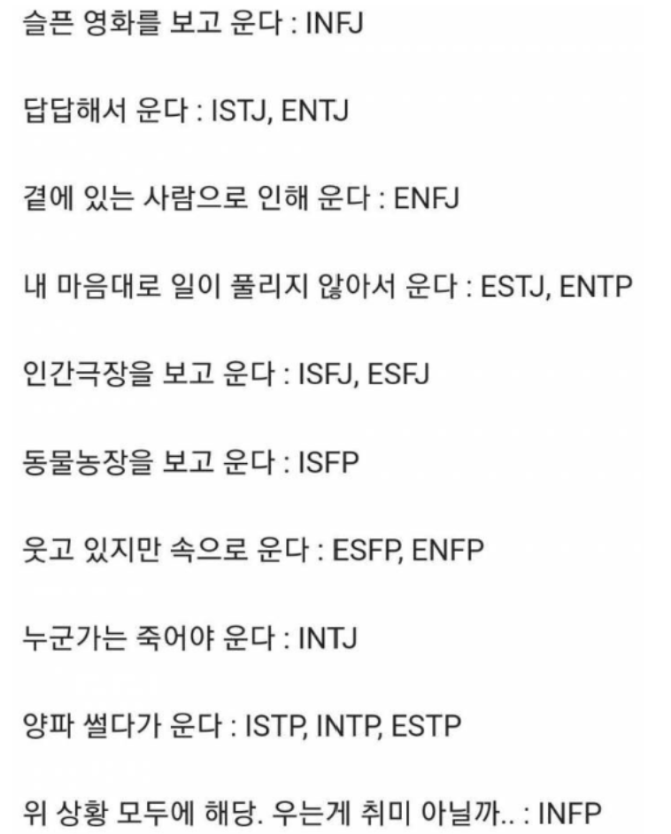 MBTI 유형별 흥미로운 특징