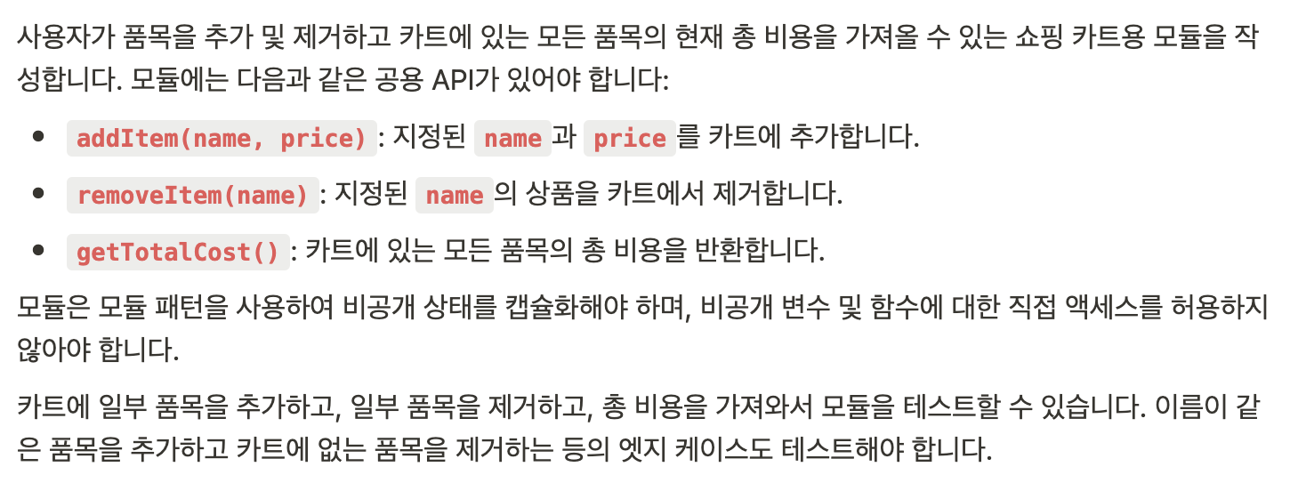 ChatGPT로 “JavaScript에서 모듈 패턴을 연습할 수 있는 도전 과제를 주세요.질문과 그에 대한 답을 묻고 나서 나온 질문입니다.